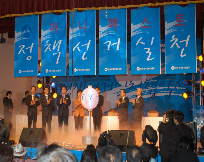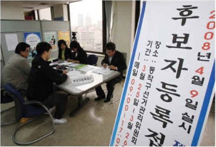In the 18th Election of the National Assembly members, the ruling and opposition parties were competing to secure an advantageous position in the political arena as it was held immediately after the 17th presidential election, in which the government was replaced in 10 years in 2007. Unlike the previous election with controversial issues such as the inter-Korean summit talks and presidential impeachment, no great political issues were raised in this election, leading to a relatively peaceful competition. The ruling party advocated “Political Stability” and the opposition camp put forward “Checks against Big Ruling Party.”