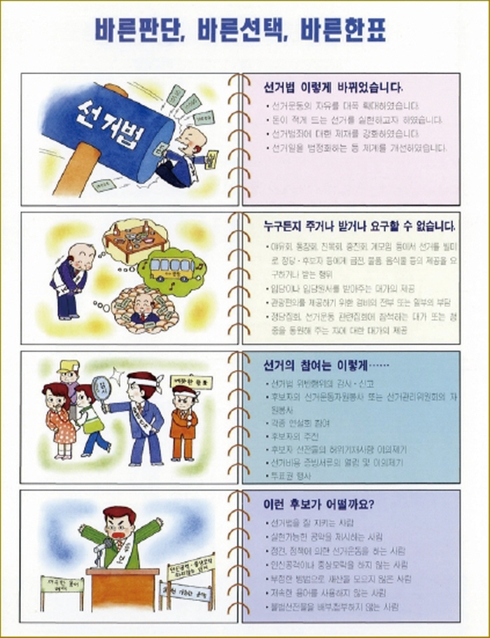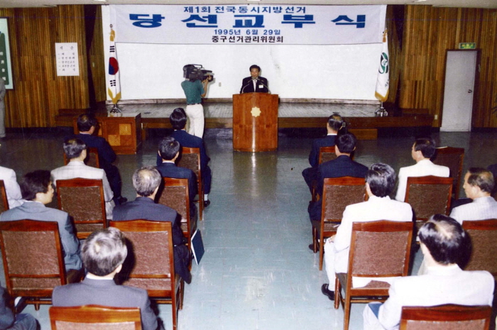 Finally, four local elections-the mayor and governor elections, the district·city·county officer elections, the city councilor and provincial assemblyman elections, and the district·city·county councilor elections- were held at the same time across the country on June 27, 1995 for the first time in the nation’s history. The 1st Nationwide Simultaneous local election was the first of its kind nationwide, under the Act on the Election of Public Officials and the Prevention of Election Malpractices, which had been newly enacted by integrating all the election laws applied to each election.